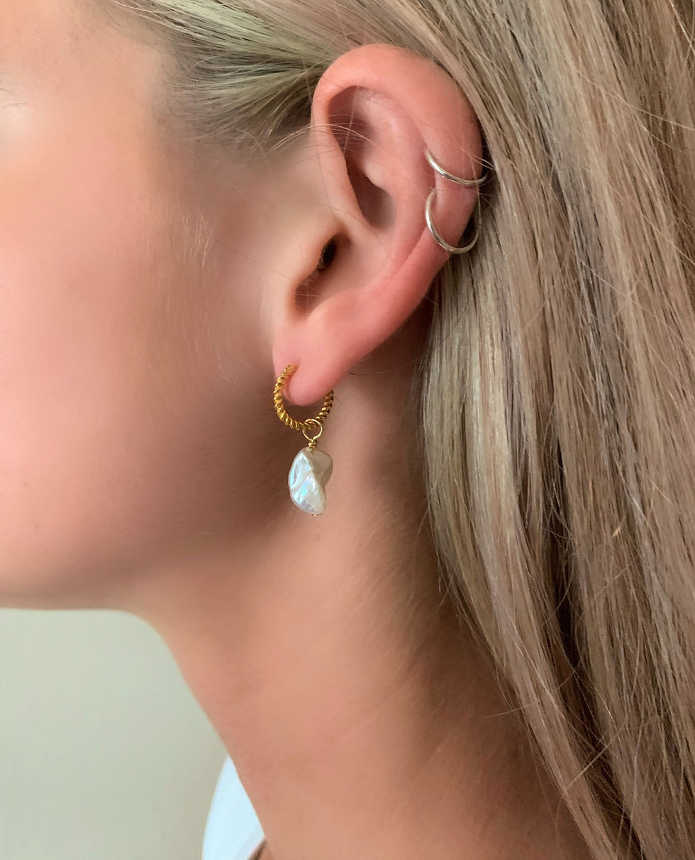 Huggie charm - Xlarge freshwater nugget pearl /2 options